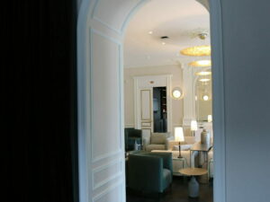 un couloir inutilisé accueille désormais un coin de discussion improvisé.